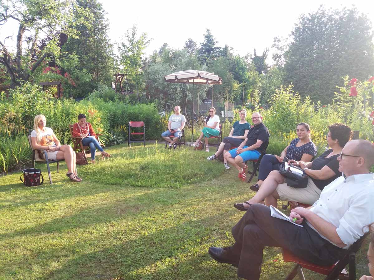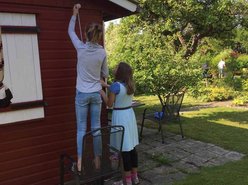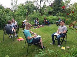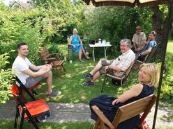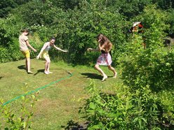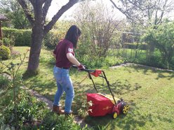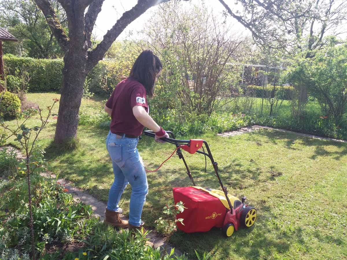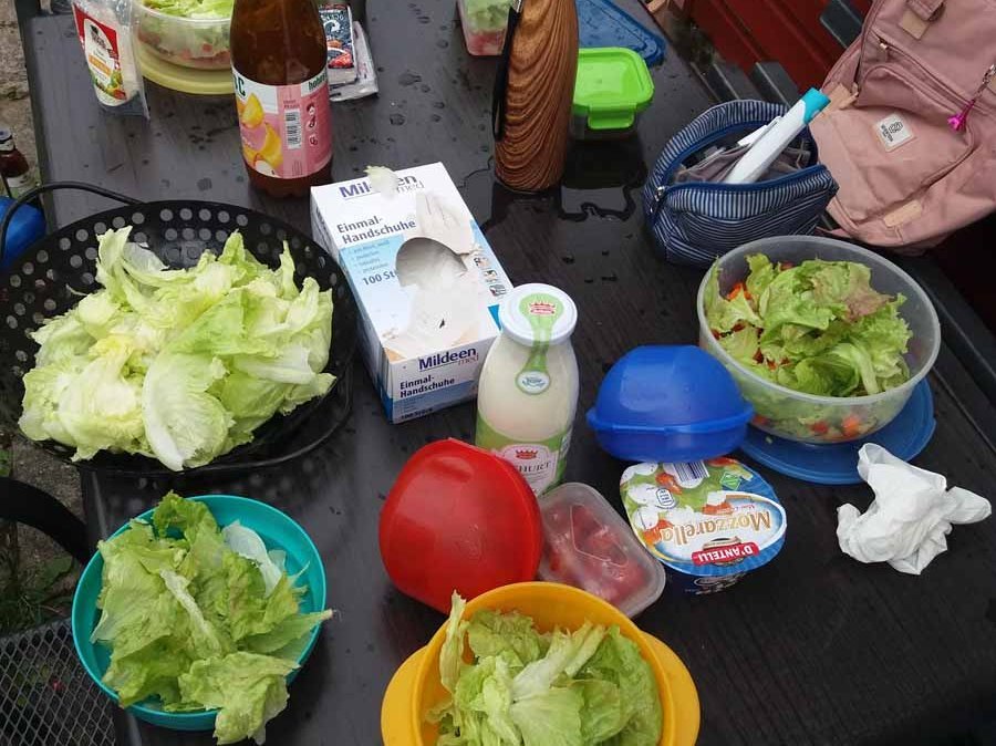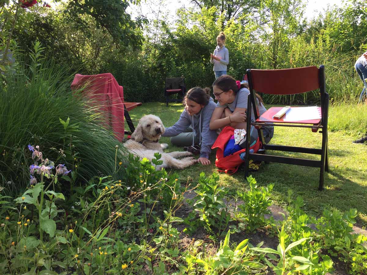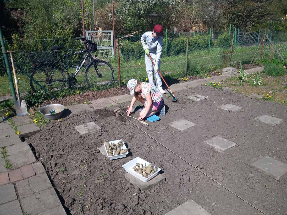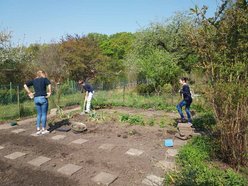 Wir fahren in Kleingruppen mit dem Fahrrad und dem Bus direkt nach Bl. 3 in den Schulgarten. Dort essen wir zusammen Mittag. Dieses bringt jede/r für sich selbst mit und kann im Gartenhaus in der Mikrowelle erhitzt werden. Danach bearbeiten wir den Garten: wir pflanzen neue Gemüsepflänzchen. Pflegen das Gemüsebeet, mähen den Rasen, schneiden Büsche und ernten das Gemüse und Obst. Manchmal reparieren wir auch Gartenmöbel, jetzt im September müsste eine Gartenbank abgeschliffen und neu gestrichen werden. Oft spielen wir am Ende noch etwas zusammen, z. B. Wikinger Schach.