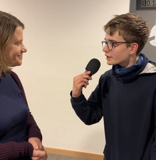 Die frischgebackene Faustball-Weltmeisterin Charlotte Salzmann war zu Besuch bei Simrock FM und stellte sich den Fragen der interessierten Jungredakteure. Dabei gab sie interessante Einblicke in die nicht so bekannte Sportart und erzählte spannende Einzelheiten von der WM.