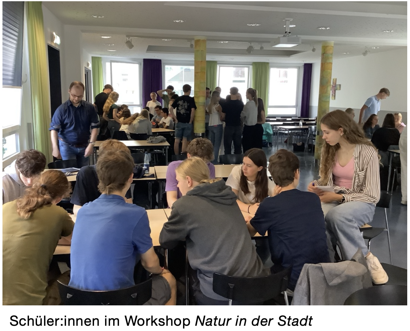 Am 4. September 2024 war Biologe und Biodiversitätsplaner Dr. Philipp Unterweger zu Gast an der St. Ursula-Schule Hannover. Schüler:innen der Leistungskurse Biologie im Jahrgang 13 (Fr. Dr. Witt & Herr Rauth), der Leistungskurse Geographie im Jahrgang 12 (Frau Thomsen) und 13 (Herr Wicher) sowie interessierte Schüler:innen aus Jahrgang 11 (Frau Thomsen & Herr Rauth) erhielten die Möglichkeit, sich in einem Workshop dem Thema Natur in der Stadt anzunähern.