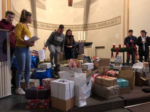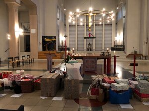 Bereits seit vielen Jahren ist es eine schöne Tradition, dass Schülerinnen und Schüler der St. Ursula-Schule in der Adventszeit Päckchen mit kleinen Geschenken, Süßigkeiten, warmer Kleidung und Hygieneartikeln zusammenstellen, die im „Päckchengottesdienst“ von den verschiedenen Klassenstufen zum Altar gebracht werden.