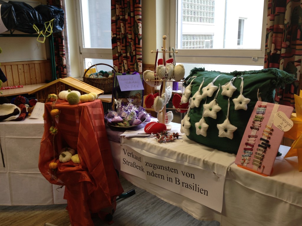 Die vielfältigen Hilfsprojekte, die Padre Bené in Brasilien initiiert hat, sind ganz wesentlich abhängig von den Spenden seiner Freunde und Unterstützer in Deutschland. In unserer Schule werden daher immer wieder Kuchenverkaufsaktionen von Klassen durchgeführt, aber auch unsere ehemalige Kollegin Elisabeth Kellner backt und verkauft regelmäßig Kekse zu Ostern, St.Martin oder Nikolaus zugunsten der Straßenkinderprojekte. Oder auf unserem Herbstbasar wird Kreatives verkauft, dessen Erlös an die Communidade Vida Nova geht.
