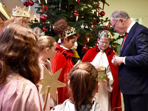 Die Sternsinger der St. Ursula-Schule und der Ludwig-Windthorst-Schule haben am Mittwoch den Segen in die Niedersächsische Staatskanzlei gebracht. Dort wurden sie von Ministerpräsident Weil empfangen und haben das Segenszeichen 20*C+M+B+19 – Christus mansionem benedicat – hinterlassen. (LINK zum Video auf Youtube)