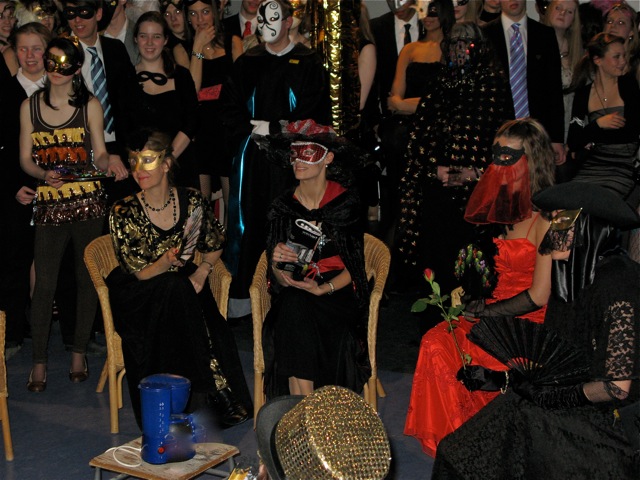 Franzi T. und Anna-Paulina P. moderierten den Tanz der "Venezianischen Paarungen" (z.B. Donna + Leon, Ponte + Rialto), den Tanz der Goldenen Herzen, bei dem die drei lockersten (!) Paare je ein Fläschchen Rotwein gewannen, die Drittplatzierten natürlich das größte, die Sieger das kleinste :-)
